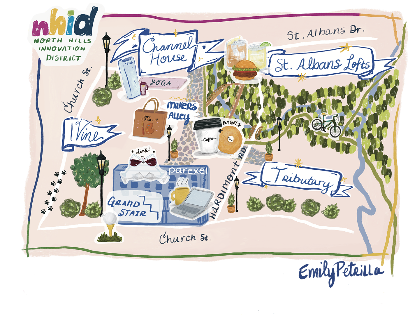 NHID is a hub for curated makers and creators plus a diverse set of food and beverage purveyors highlighted by distinctive indoor and outdoor experiences. Explore Midtown Raleigh’s vibrant creative community featuring 60,000 SF of active ground-level retail space, plus a plethora of parking and bike/pedestrian connections.